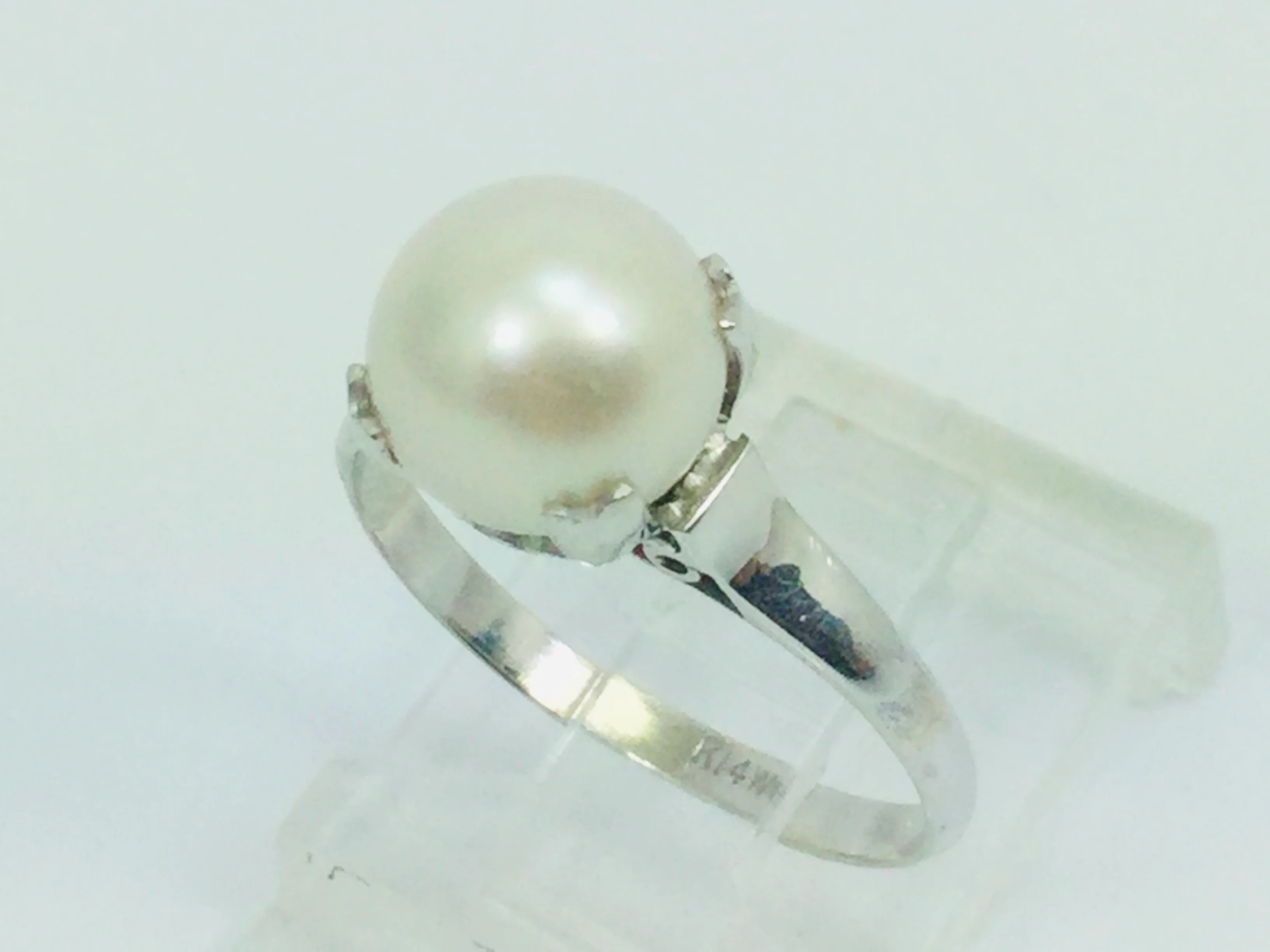 14k White Gold Genuine Pearl June Birthstone Cocktail Ring