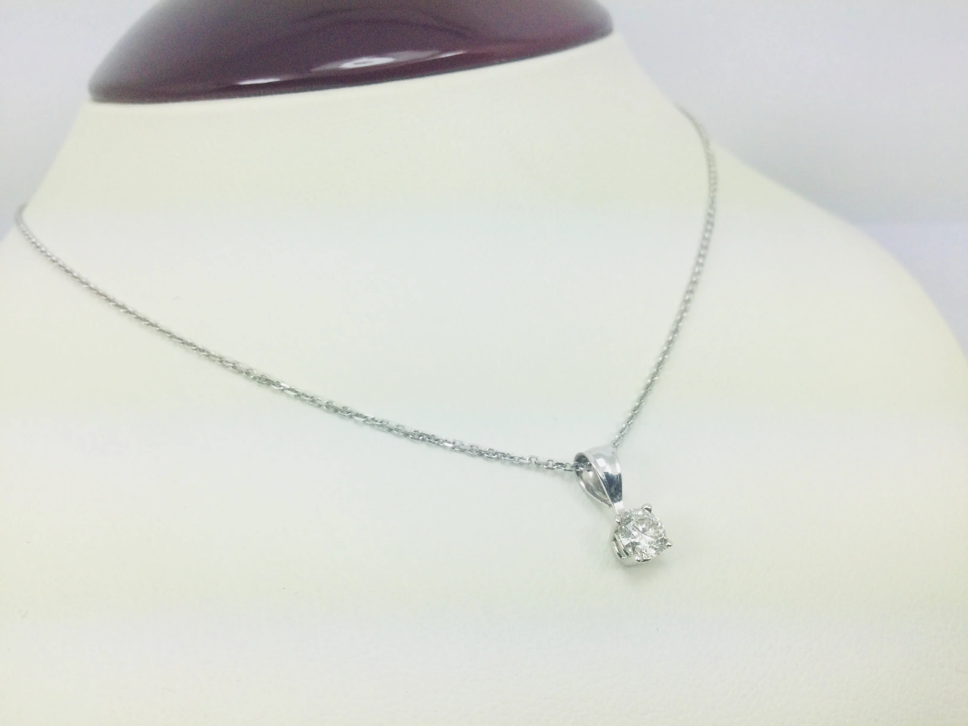 Stunning Vintage 14k White Gold Round Cut 30ptt Diamond Solitaire Necklace
