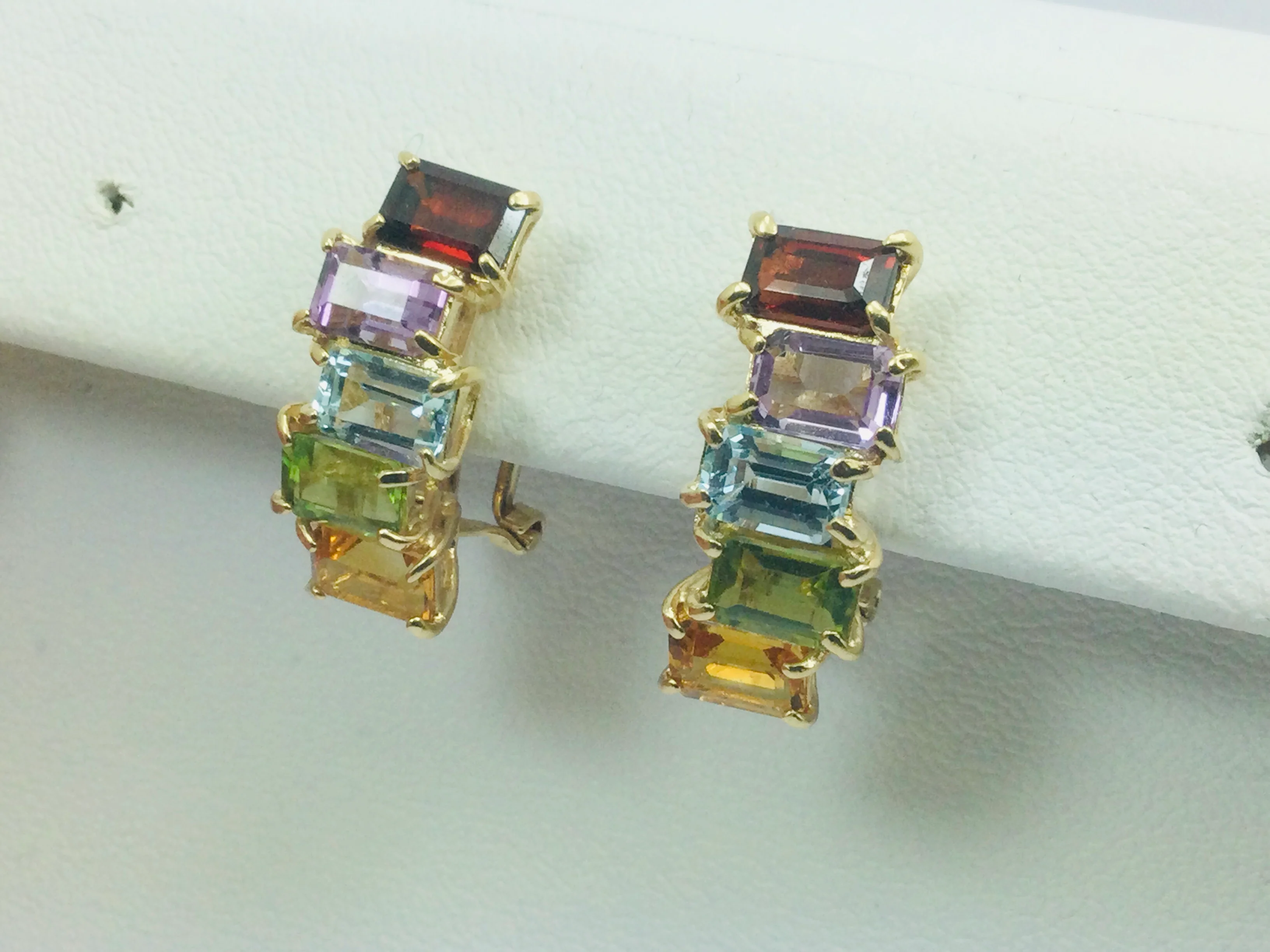 14k Yellow Gold Garnet, Amethyst, Blue Topaz, Peridot & Citrine Clip-On Earrings