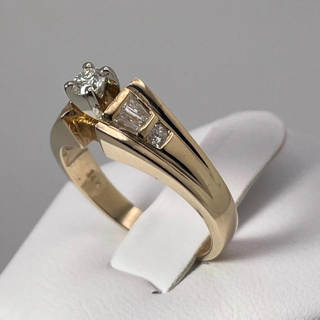 Vintage 14k Yellow & White Gold 0.45ct Diamond Engagement / Anniversary / Promise Ring